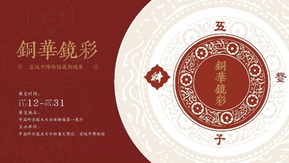 为弘扬中华优秀传统文化,彰显古代铜镜的魅力风采,中国科学技术大学档案文博院与宣城市博物馆联合主办《铜华镜彩——宣城市博物馆藏古代铜镜展》,为全校师生认识中国古代铜镜的发展历程、了解宣城历史文化打开一扇窗。