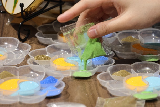 活动伊始,老师为同学们分发了精心准备的制作工具包,包含金丝、彩砂、胶水等材料,并细致讲解了掐丝珐琅的历史渊源与工艺特点。从图样设计到掐丝定型,从调砂填色到固色成画,老师逐步演示制作流程,强调技术要点。